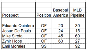 We have not yet seen a list from The Athletic (Keith Law), ESPN (Kiley McDaniel), or Fangraphs.