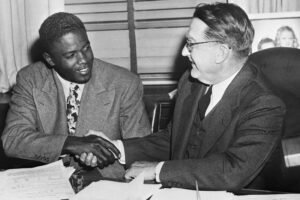 The Sixth Inning: THE NATIONAL PASTIME: This segment covers 1940-50, when the game became what it had always said it was, the national pastime. It covers how WWII affected the game and the nation with many stars joining the military. It also covers men of color finally being allowed to compete in the major leagues led by Jackie Robinson and the Dodgers. In earlier episodes, they touched on how a black player was not allowed to lodge at the same hotel as his white players while he was managing Wesleyan University. He never forgot that humiliation the young player felt. Rickey was credited with many innovations including the creation of the modern farm system.