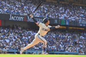 The Dodgers would chase Bido in the 2nd, scoring 3 more runs. Dalton Rushing, making his first big league start after replacing Austin Barnes on the roster, drew a walk to lead off the inning. Outman then struck out bringing Kim to the plate. Kim singled to right sending Rushing to third. Ohtani then hit a sac-fly to right scoring Rushing, his first MLB run. Kim then stole second, jamming his fingers on the second baseman’s foot. Betts lined a 2-2 pitch to left scoring Kim.