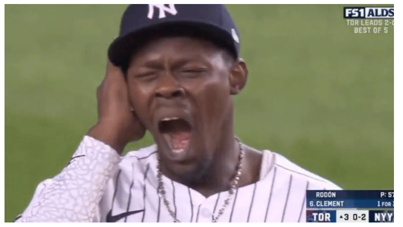 Jazz Chisholm yawning whilst losing in the third inning of an elimination game loool